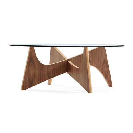 Cambre, by Leland, unifies form with material in a modern take to wood carpentry. The addition of the transparent top invites the viewer to admire the base from a different perspective.